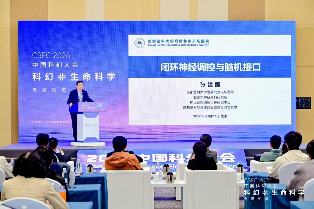 论坛上,多位行业专家带来精彩分享。北京天坛医院功能神经外科主任张建国教授聚焦临床应用,围绕闭环神经调控与脑机接口技术进行权威解读,阐释了该项技术在神经系统疾病诊疗领域的广阔应用空间。中科搏锐(北京)科技有限公司总经理张鑫立足产业前沿,描绘出脑机接口技术突破到意念控制场景落地的未来发展图景。世界华语科幻星云奖获得者、科幻作家郑军则从科幻视角出发,探讨了从脑机接口向“脑脑”接口演进的未来方向。