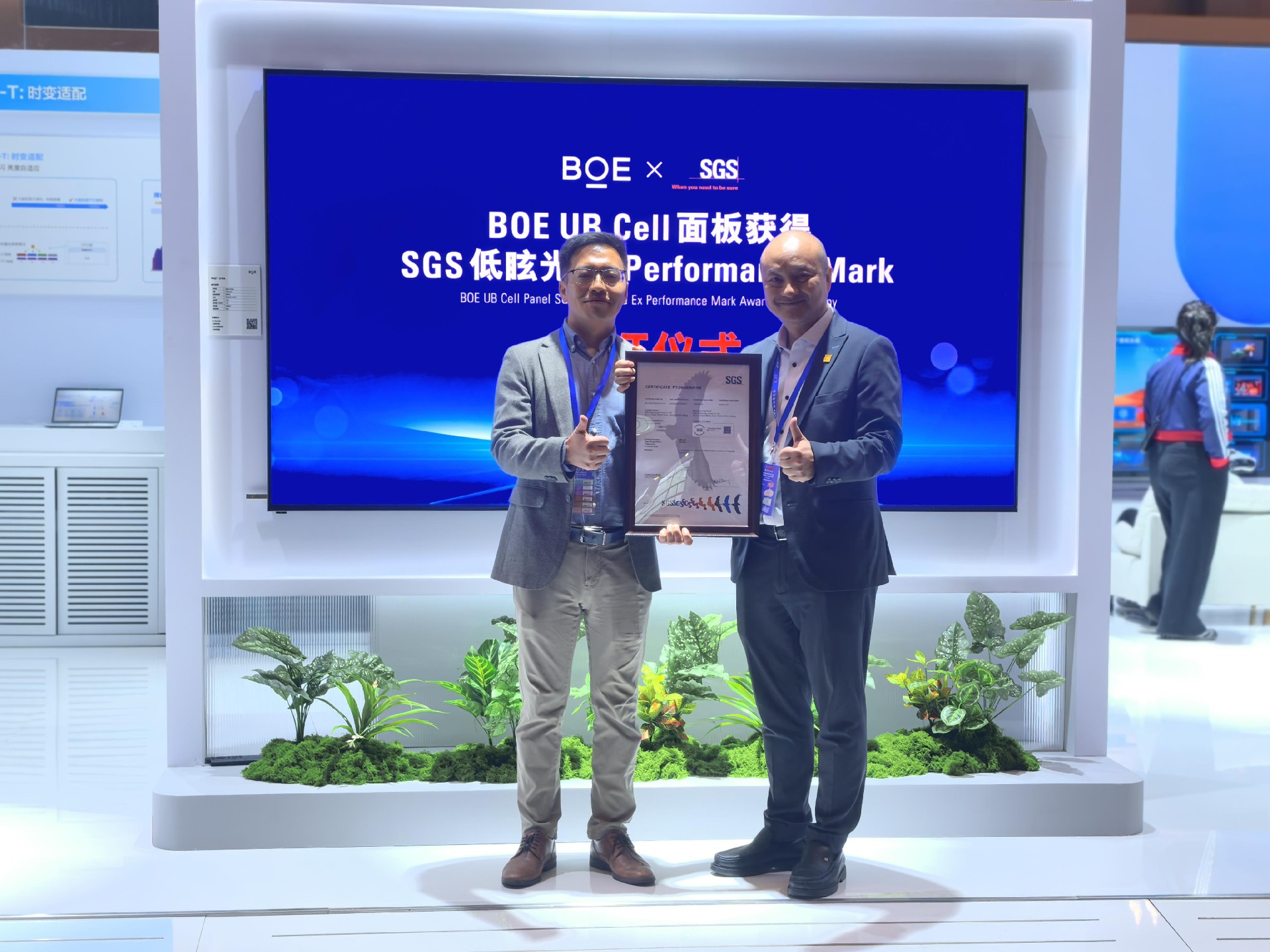 国际权威检测认证机构SGS授予BOE(京东方)UB Cell面板首张“SGS低眩光Ex Performance Mark”,这是该标准下的最高等级认证。