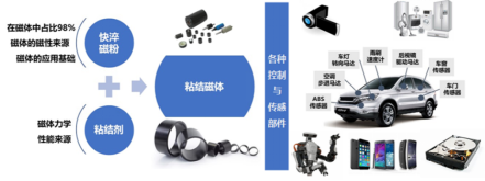 粘结磁体是快淬磁粉和少量有机粘结剂均匀混合,通过模压和注射等成型方式制备的复合材料,广泛应用于智能机器人、新能源汽车、信息技术、节能家电等高新技术领域,推动了各类微特电机的高效化以及传感器件的精密化。