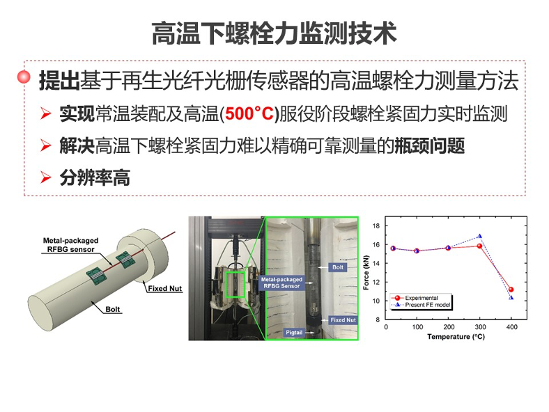 面向保障高温、深冷等严苛环境下重大装备服役安全的迫切需求,针对缺乏精确、可靠传感装置的重大挑战,团队致力于严苛环境下光纤光栅(FBG)传感技术的研发及应用,创新成果:(1)发明了耐高温全金属封装再生FBG温度/应变传感器及其制造工艺,工作温度高达600°C,应变灵敏度提高约70%,解决了物性不匹配的光纤与金属连接难题;(2)发展了耐低温全金属封装FBG温度/应变传感器及其制造工艺,工作温度低至-196℃,低温温度灵敏度提高3倍以上,疲劳寿命达百万周次;(3)提出基于再生FBG传感器的高温螺栓力测量方法,实现了常温装配及高温服役阶段螺栓力监测,解决了高温下螺栓力难以精确可靠测量的问题。相应成果正在CAP1400和华龙一号主蒸汽隔离阀驱动装置以及核电站的电动闸阀、调节阀等装置上实施应用,为严苛环境下重大装备的长周期安全运行提供关键技术支撑。