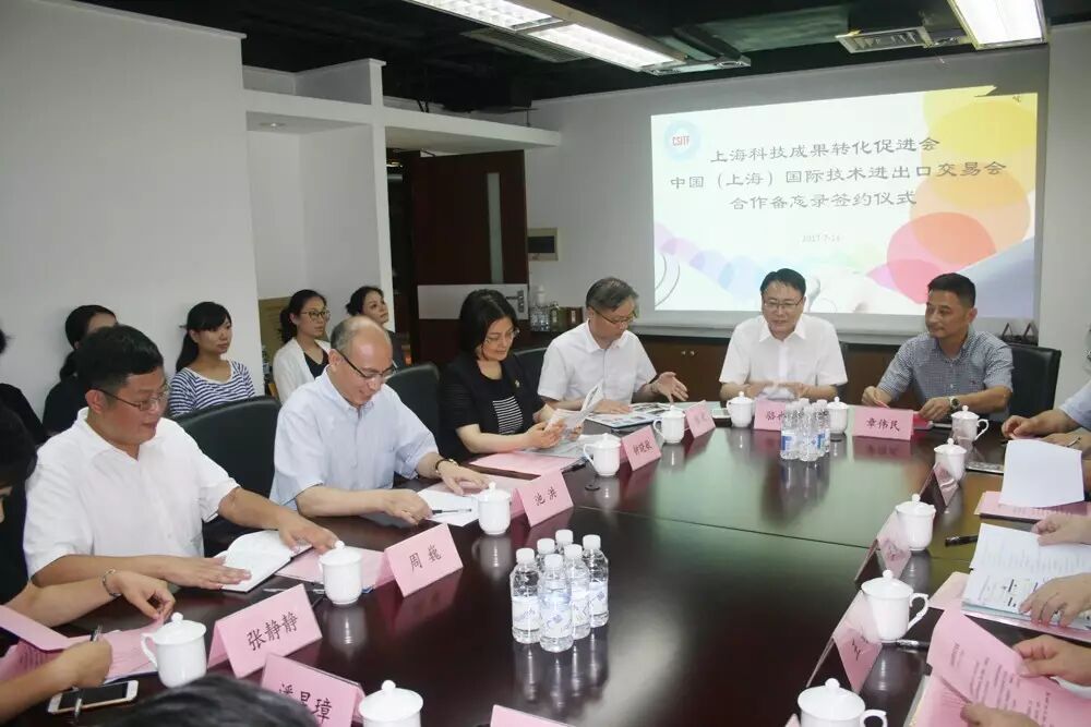 出席仪式的领导有:上海市十届政协副主席、科促会会长王荣华、科促会常务副会长王奇、科促会常务副秘书长杨庆根、上海市商务委副主任钟晓敏、东浩兰生集团总裁、上交会执行办常务副主任池洪、上海市国际技术进出口促进中心主任张静静、东浩兰生集团副总裁、商展公司董事周巍、商展公司副总经理潘昱璋等。签约仪式由东浩兰生集团商展公司副总经理骆也舟主持,周巍副总裁致辞;杨庆根常务副秘书长宣读“科促会与上交会合作备忘录”;王奇常务副会长、潘昱璋副总经理分别代表双方签约;池洪总裁、钟晓敏副主任、王荣华副主席先后讲话,共同祝贺双方签约合作成功,希望科促会发挥国家技术转移示范机构的引领示范作用,上交会发挥促进技术贸易产业化、市场化、国际化的独特平台作用,积极探索、共同举办技术贸易、成果转化、产学研合作等为主体内容及更大领域、更深范围的科技合作交流活动,实现共建平台、共享资源、共同发展,进一步促进科技成果转化、技术贸易发展,为服务国家创新战略、助推上海科创中心建设作出新的努力与贡献!